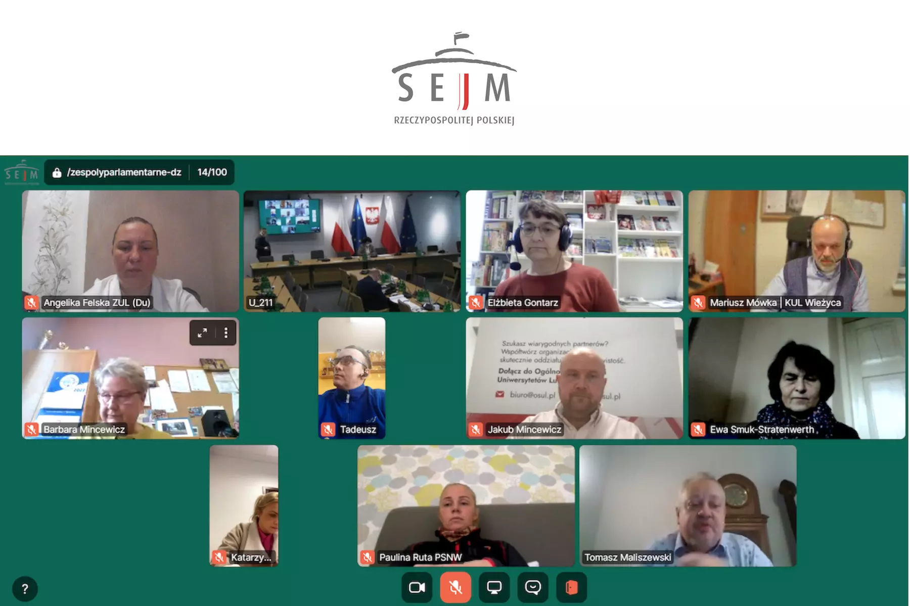 W czwartek, 10 lutego 2022 r. odbyło się posiedzenie Parlamentarnego Zespołu ds. Rozwoju Kół Gospodyń Wiejskich i Miejskich, którego przedmiotem były Uniwersytety ludowe w Polsce - historia, działalność i perspektywy rozwoju. Spotkanie było prowadzone z wykorzystaniem środków komunikacji elektronicznej umożliwiających porozumiewanie się na odległość, dzięki czemu mogli wziąć w nim aktywny udział także przedstawiciele polskich uniwersytetów ludowych, w tym Prezes Zachodniopomorskiego Uniwersytetu Ludowego – Angelika Felska. Na posiedzeniu poruszane były m.in. kwestie związane z ideą i historią UL w Polsce, z ich programami oraz finansowaniem.